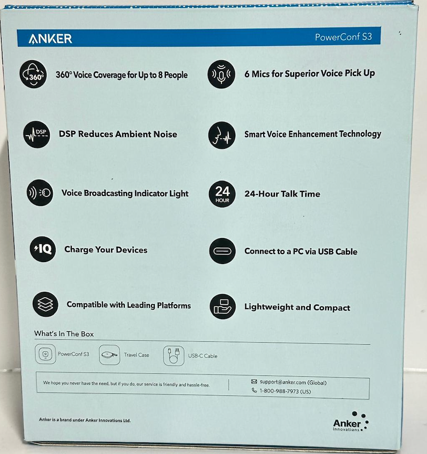 - Easy To Setup: PowerConf S3 Bluetooth speakerphone is compatible with all popular online conferencing platforms and can be connected to your phone via Bluetooth or computer with the USB-C cable.