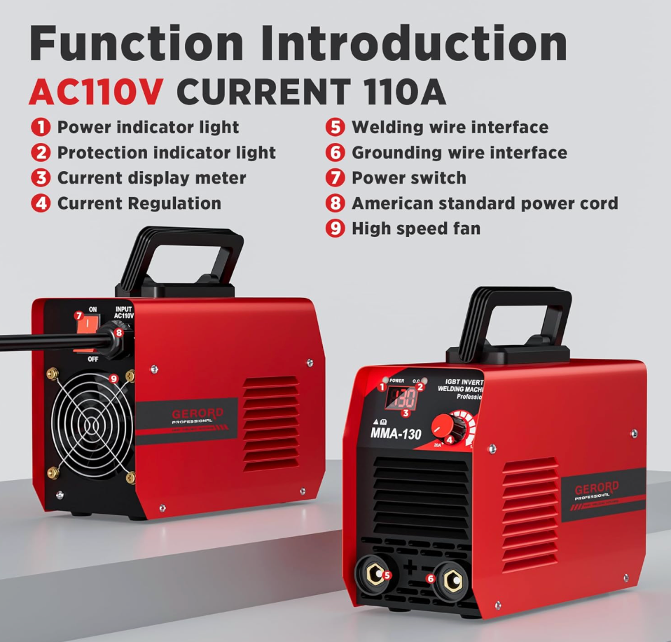 GERORD Mini Welder Machine 110V, 130A ARC Portable MMA Welding Machine, Digital Display IGBT Inverter Welder, With Welder Kit