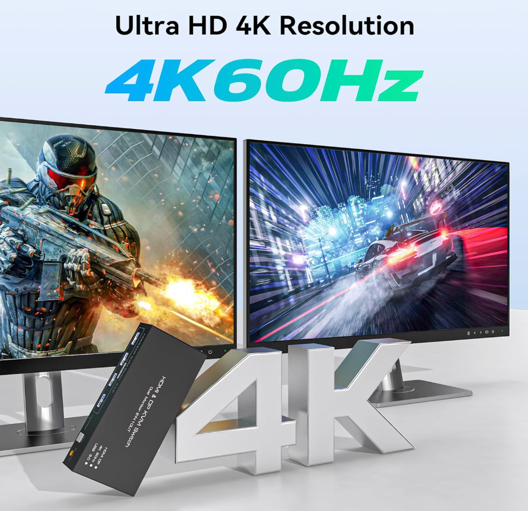 - 【Support Ultra HD 4K@60hz Visuals】The hdmi+ dp kvm switch 2 monitors support resolution up to 3840*2160@60Hz(4K@60hz) and is backward compatible with 4K@30Hz,and 1080P@60Hz, Immerse yourself in the world of crystal-clear images,Brings you realistic visual enjoyment . Note: If you need to output 4K@60Hz resolution, please make sure your HDMI cable, computer and monitor support 4K@60Hz.