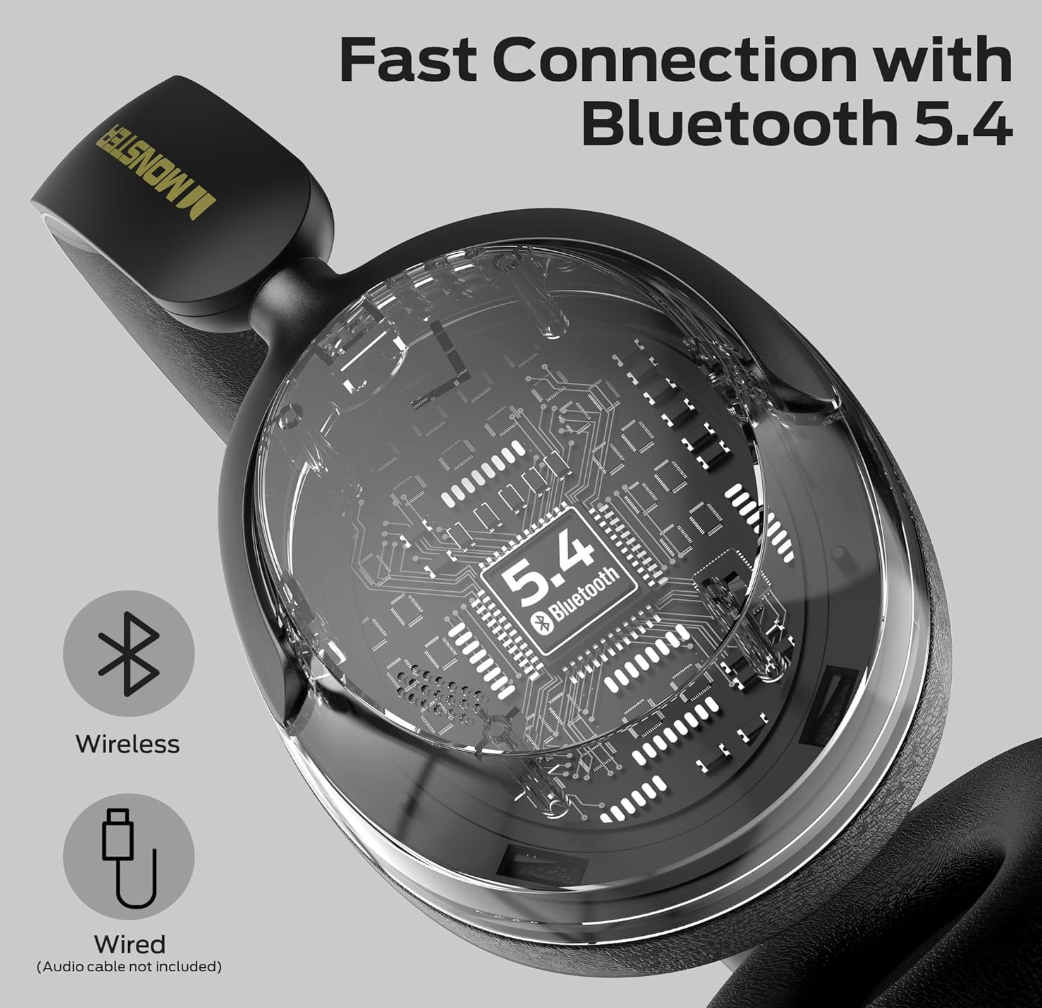 - 【 Premium Comfort 】Monster headphones bluetooth wireless feature a plush sponge cushioning on the ear cups, ensuring a comfortable fit for extended periods of wear. The headband is designed with adjustable length settings, providing users with optimal comfort and stability. Whether you're wearing them for long flights, intense workouts, or relaxing at home, wireless headphones over ear offer a balance of comfort and adjustability.