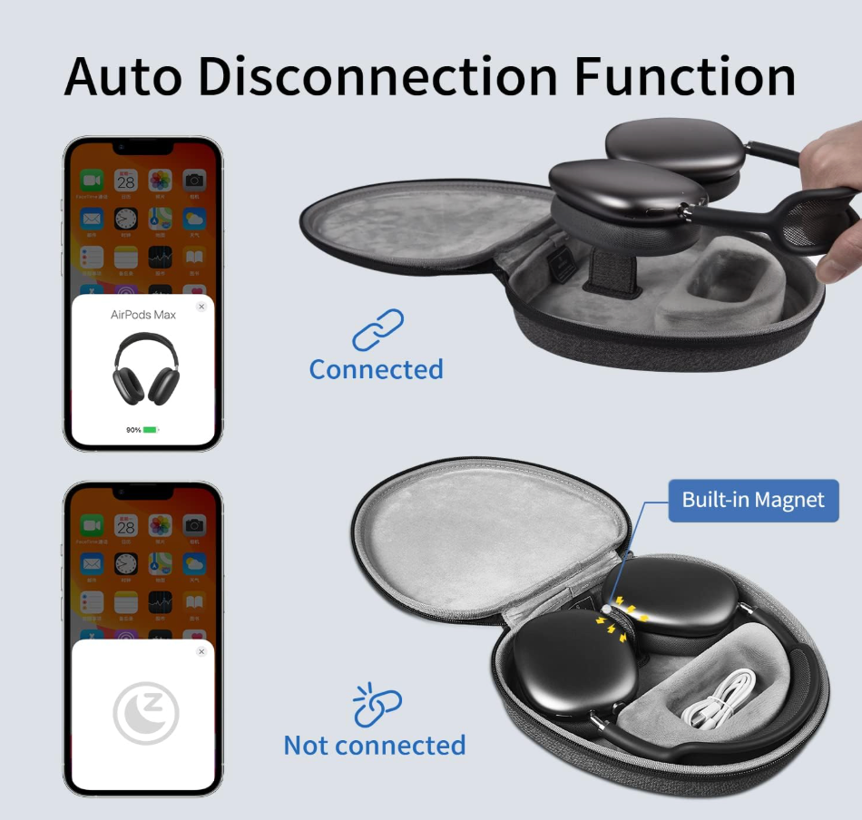 - The Bluetooth can be automatically disconnected into Sleep Mode when you put your AirPods Max in this carrying case and it reconnects instantly when you take AirPods Max out.