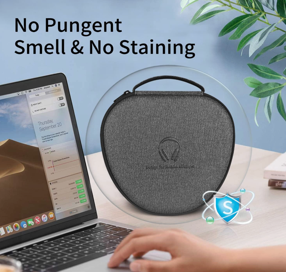 - Made from advanced safety materials, this hard travel case has passed authoritative quality inspections. We have also implemented a special process to ensure that the AirPods Max Headphone case is odor-free, making it environmentally friendly and harmless. (Note: Apple headphones and AirPods Max accessories are not included)